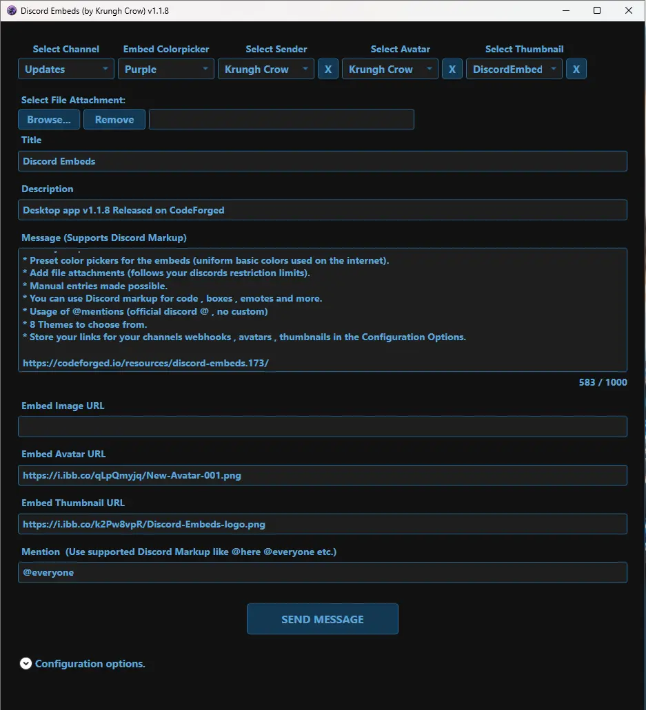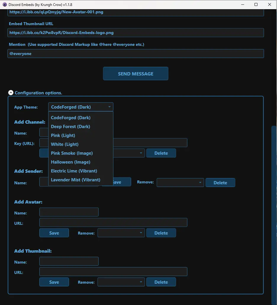 • Store your links for your channels webhooks , avatars , thumbnails in the Configuration Options.