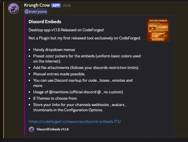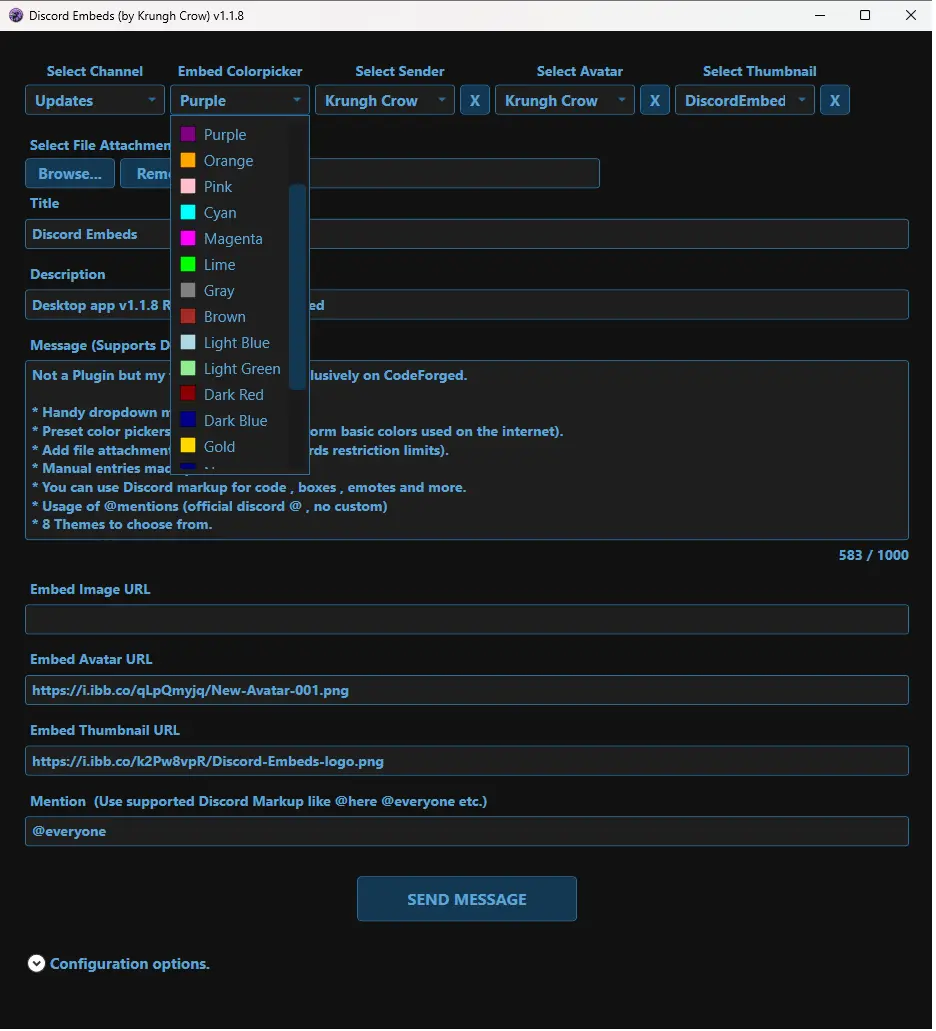 • Preset color pickers for the embeds (uniform basic colors used on the internet).